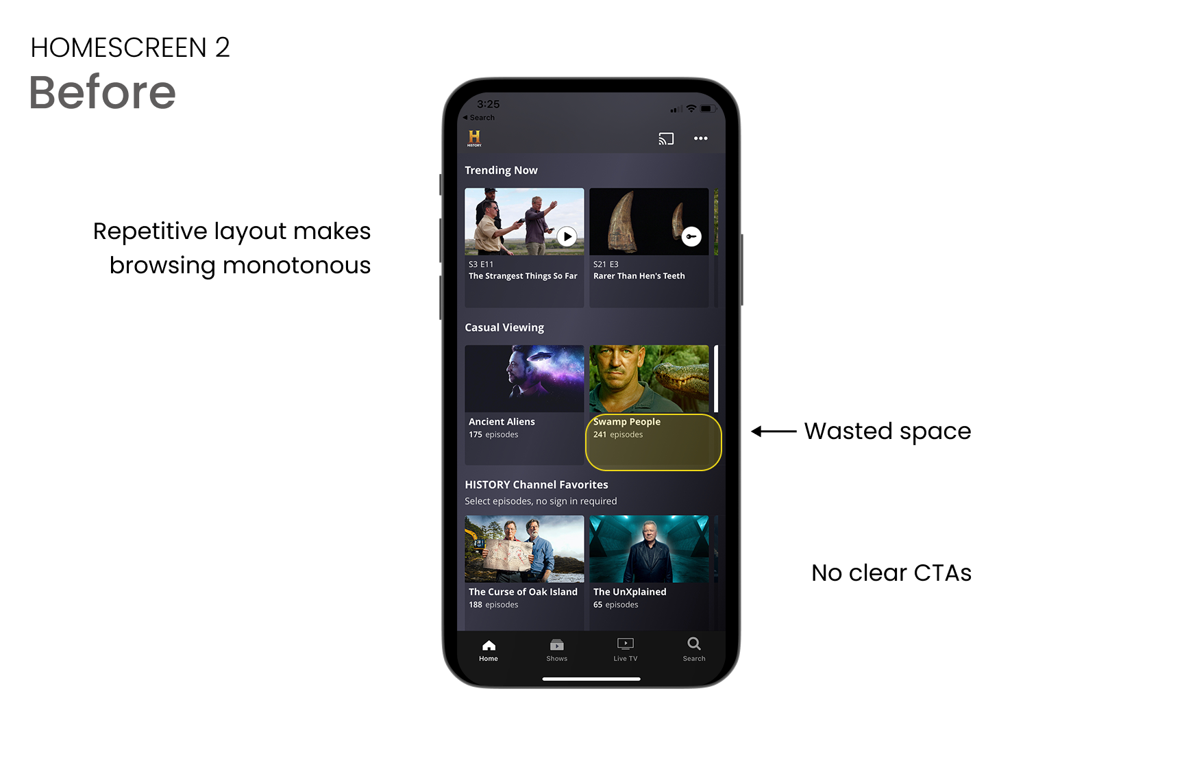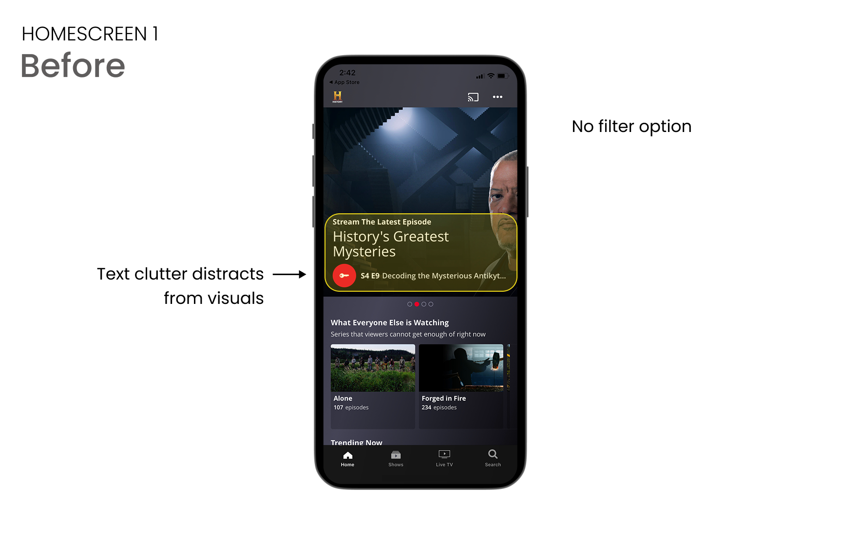 Users couldn’t distinguish historical vs reality content, making it harder to trust what they were watching.
